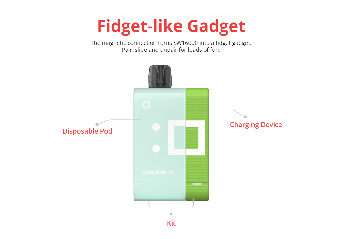 16,000+ Puff💨Eco-Friendly♻️5% Nic🍀Easy Recharges⚡️Flexible Matching🔀Replaceable Pod♾️Magnetic Battery🧲