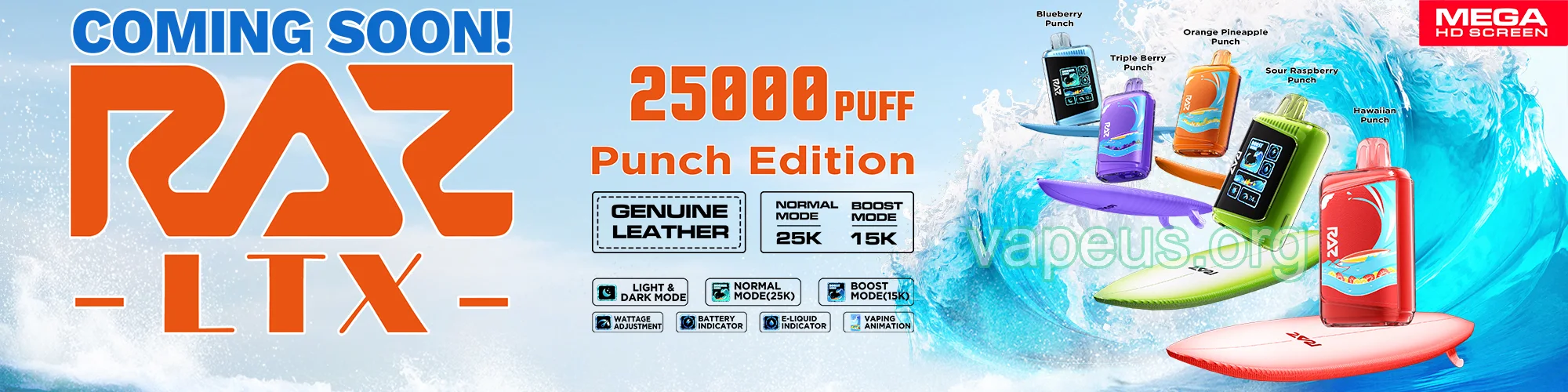The Raz Vape Punch Edition is a flavor fiesta designed for vapers who crave bold, juicy profiles. Each of the five new blends combines tropical fruits, tangy twists, and icy finishes for an unforgettable experience.